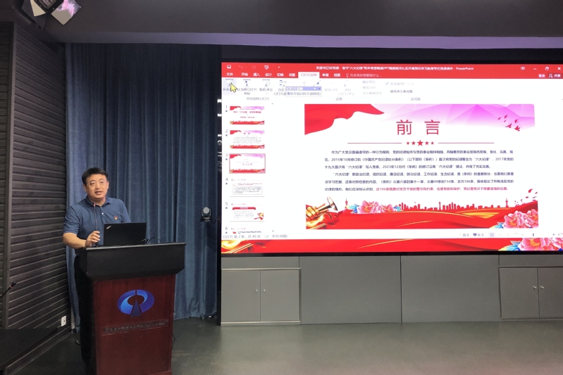 根据党纪学习教育安排,6月12日下午,炼焦煤全重师生党支部在矿业科学中心B514报告厅开展党纪学习教育专题党课。教师党支部书记吕向前做《恪守“六大纪律”,筑牢思想根基》主题党课,师生党支部全体党员共同参加此次党课学习。